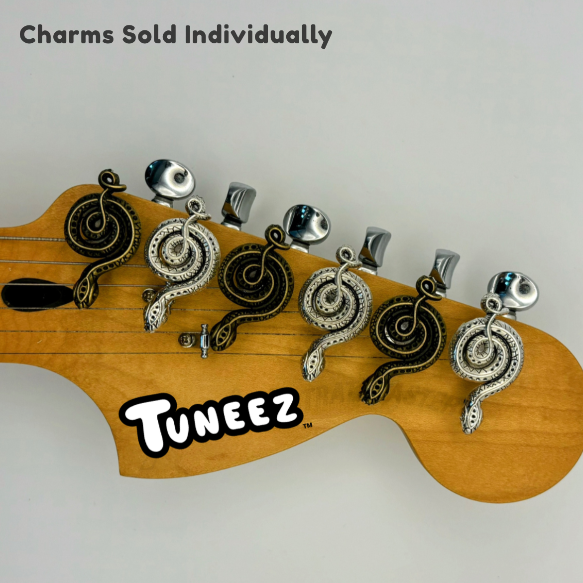 Sleek, mysterious, and full of attitude the Snake charm adds an edge to your instrument. Available in silver or bronze, its winding design brings a touch of bold style and timeless appeal. Built to last with a polished finish, it’s perfect for musicians who like their gear with a little bite.